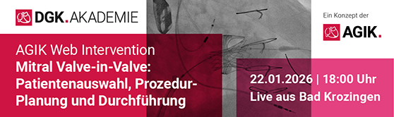 AGIK Web ist die Weiterentwicklung der seit 2015 bestehenden AGIKweb.PCI Live-Workshops. Das Format ist der größte deutsche Live-Workshop in der interventionellen Kardiologie und lebt von der Interaktion der Zuschauer mit dem Expertenpanel und den Interventionalisten:innen im Herzkatheterlabor bzw. HybridOP. Über einen Livestream verfolgen Sie direkt, ohne Log-in, hautnah eine interventionelle Prozedur mit unterschiedlichen Themenschwerpunkten.