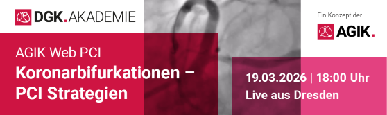 AGIK Web PCI zeigt Live-Cases aus der Koronartherapie und AGIK Web Intervention stellt Interventionen aus dem Bereich der strukturellen Eingriffe vor.